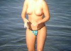 Topless cutie is a bit shy when sees camera